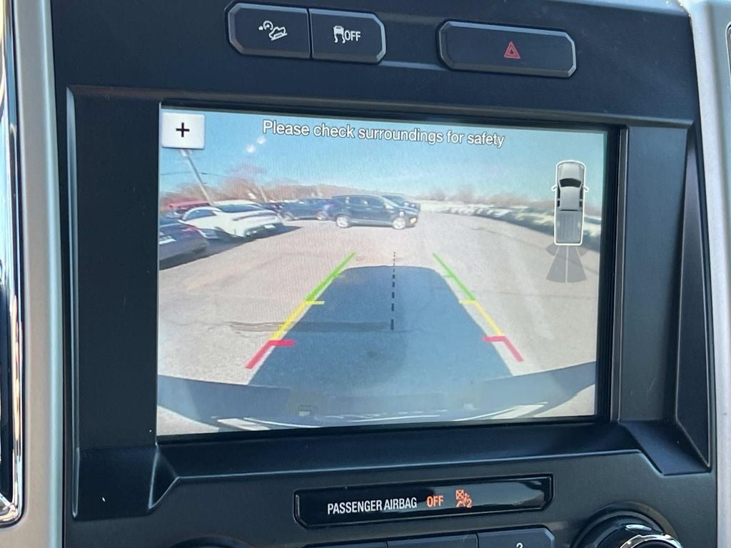 4WD. Equipment Group 501A Mid (110V/400W Outlet, BLIS Blind Spot Information System, LED Side-Mirror Spotlights, Power Glass Sideview Mirr w/Body-Color Skull Caps, Remote Start System w/Remote Tailgate Release, Reverse Sensing System, and Universal Garage Door Opener), FX4 Off-Road Package (4x4 FX4 Off-Road Bodyside Decal, Front & Rear Off-Road Tuned Shock Absorbers, and Hill Descent Control), GVWR: 6,500 lbs Payload Package, Lariat Chrome Appearance Package (Chrome 3-Bar Style Grille w/Chrome Surround, Chrome Angular Step Bars, Chrome Door & Tailgate Handles w/Body-Color Bezel, Chrome Skull Caps on Exterior Mirrors, Single-Tip Chrome Exhaust, and Wheels: 18 Chrome-Like PVD), Max Trailer Tow Package (Auxiliary Transmission Oil Cooler, Class IV Trailer Hitch Receiver, Integrated Trailer Brake Controller, Pro Trailer Backup Assist, and Upgraded Front Stabilizer Bar), 4WD, 18 Machined-Aluminum Wheels, 4-Wheel Disc Brakes, 7 Speakers, ABS brakes, Adjustable pedals, Air Conditioning, Alloy wheels, AM/FM radio: SiriusXM, Auto-dimming door mirrors, Auto-dimming Rear-View mirror, Automatic temperature control, Brake assist, Bumpers: chrome, CD player, Compass, Delay-off headlights, Driver door bin, Driver vanity mirror, Dual front impact airbags, Dual front side impact airbags, Electronic Stability Control, Extended Range 36 Gallon Fuel Tank, Exterior Parking Camera Rear, Foldable Pickup Box Bed Extender, Front anti-roll bar, Front Center Armrest w/Storage, Front dual zone A/C, Front fog lights, Front License Plate Bracket, Front reading lights, Front wheel independent suspension, Fully automatic headlights, Heated door mirrors, Heated front seats, Illuminated entry, Leather-Trimmed 40/20/40 Front Seat, Low tire pressure warning, Memory seat, Occupant sensing airbag, Outside temperature display, Overhead airbag, Overhead console, Panic alarm, Passenger door bin, Passenger vanity mirror, Pedal memory, Power door mirrors, Power driver seat, Power passenger seat, Power steering, Power windows, Radio data system, Radio: Single-CD w/SiriusXM Satellite, Rear reading lights, Rear seat center armrest, Rear step bumper, Rear window defroster, Remote keyless entry, Security system, Speed control, Speed-sensing steering, Split folding rear seat, Steering wheel mounted audio controls, SYNC 3, Tachometer, Tailgate Step w/Tailgate Lift Assist, Telescoping steering wheel, Tilt steering wheel, Traction control, Trip computer, Turn signal indicator mirrors, Twin Panel Moonroof, Variably intermittent wipers, Ventilated front seats, Voice-Activated Navigation, and Voltmeter.